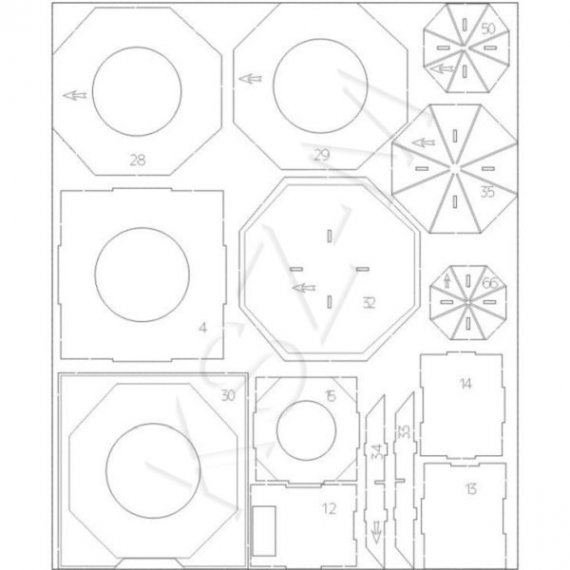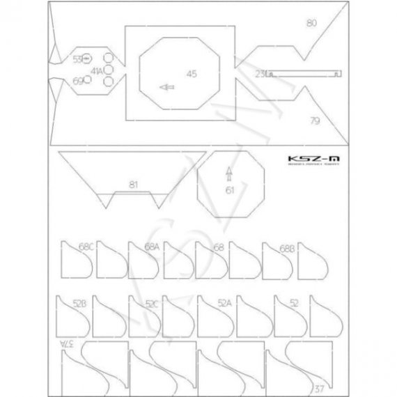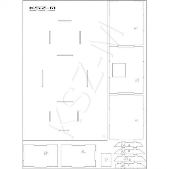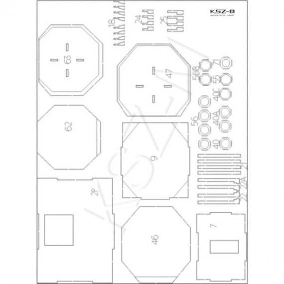 Laserowo wycięte elementy modelu, które w oryginalnej wycinance wymagają podklejenia odpowiedniej grubości tekturą. Elementy te są precyzyjnie wycinane ploterem laserowym od razu w tekturze o właściwej grubości i wymagają jedynie wypchnięcia palcem z arkusza (połączone są tylko małymi łącznikami).