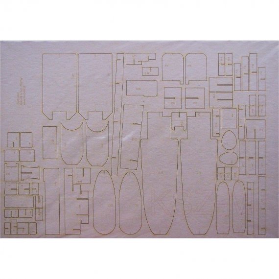 Laserowo wycięte elementy modelu, które w oryginalnej wycinance wymagają podklejenia odpowiedniej grubości tekturą. Elementy te są precyzyjnie wycinane ploterem laserowym od razu w tekturze o właściwej grubości i wymagają jedynie wypchnięcia palcem z arkusza (połączone są tylko małymi łącznikami).