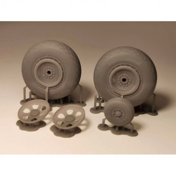 Komplet kół żywicznych do modelu samolotu P-47 Thunderbolt. Zestaw zawiera 3 koła.