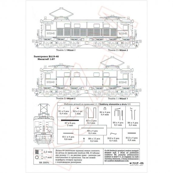 Z wycinanki możemy wykonać model lokomotywy elektrycznej VL 19 w skali 1:87 w jednej z trzech wersji. Możemy wybrać kolor lokomotywy (jasnoniebieski lub zielony) lub wykonać model w wersji "Arktyka".