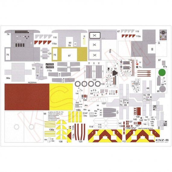 - zestaw wycinany laserowo: szkielet (wręgi), koła, grawerowana kratownica podłogi pomostu