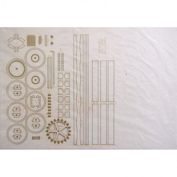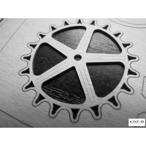 Zestaw zawiera elementy wycinane laserowo, które w standardowej wersji wycinanki trzeba podklejać tekturą o odpowiedniej grubości. Te części są precyzyjnie wycięte laserem bezpośrednio w tekturze o wymaganej grubości, więc wystarczy je jedynie delikatnie wypchnąć z arkusza, gdyż są połączone jedynie cienkimi łącznikami. Kupując ten zestaw, nie trzeba dokupywać dodatkowego zestawu tektur – wszystkie potrzebne elementy są już zawarte w komplecie.