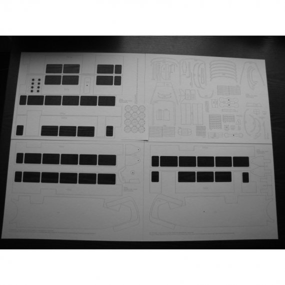 Laserowo wycięte elementy modelu, które w oryginalnej wycinance wymagają podklejenia odpowiedniej grubości tekturą. Elementy te są precyzyjnie wycinane ploterem laserowym od razu w tekturze o właściwej grubości i wymagają jedynie wypchnięcia palcem z arkusza (połączone są tylko małymi łącznikami).