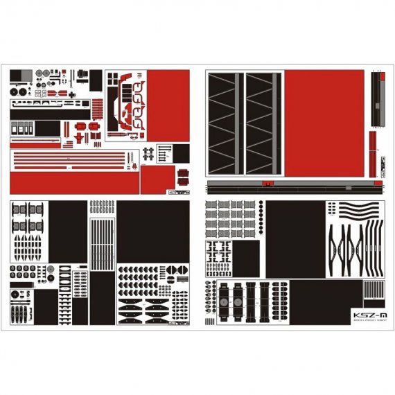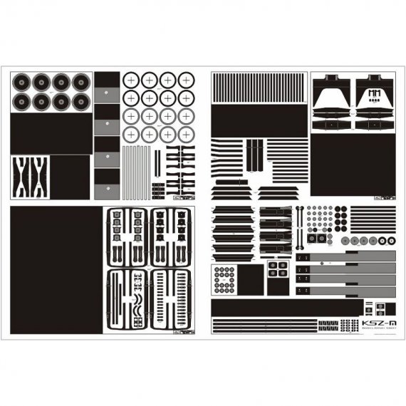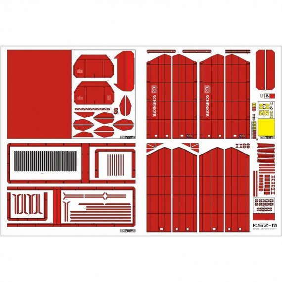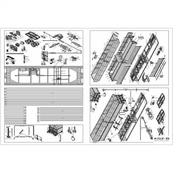- zestaw wycinany laserowo: szkielet (wręgi), koła, grawerowane tabliczki