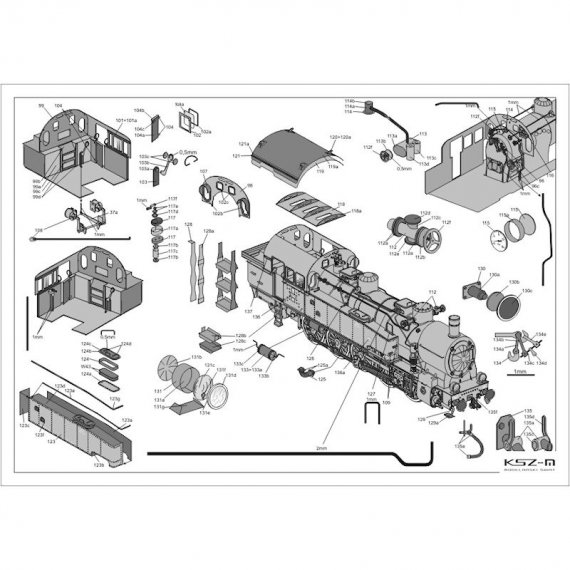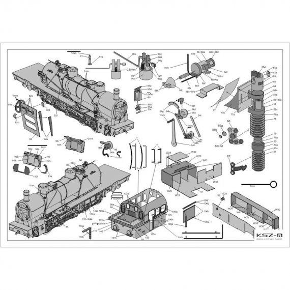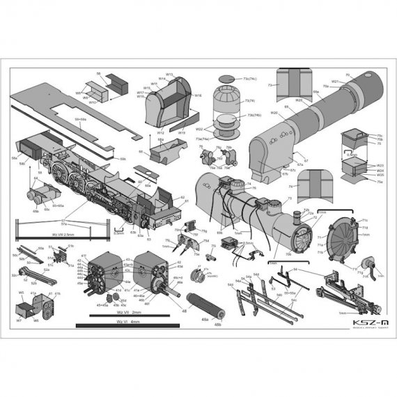 - 1 kolorową stronę A3 z rzutem bocznym parowozu i zdjęciami modelu wykonanego przez autora