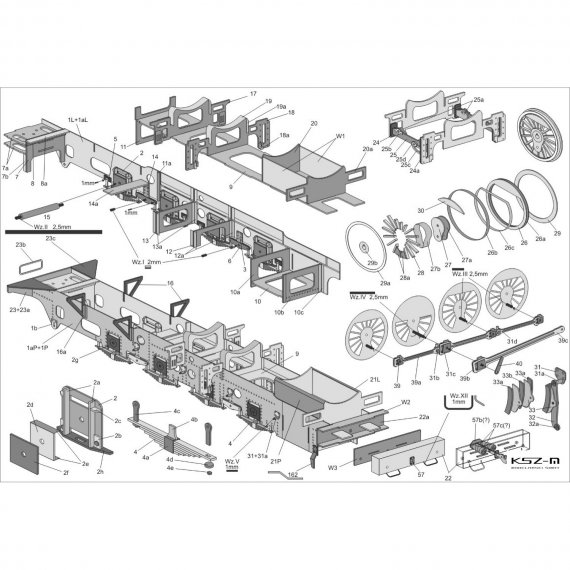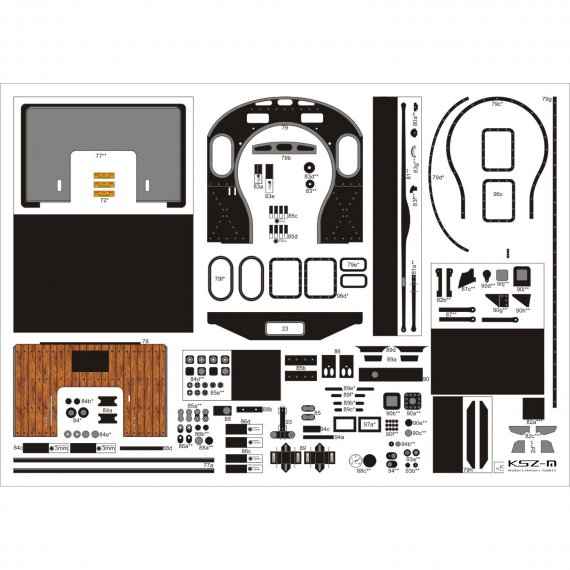 - zestaw wycinany laserowo: szkielet (wręgi), koła, detale