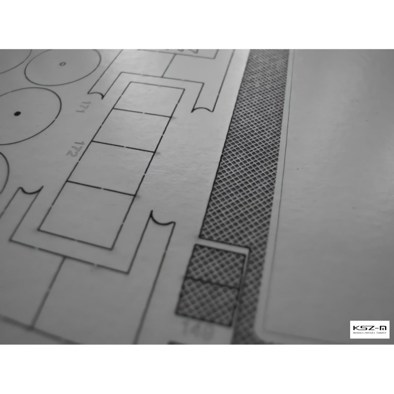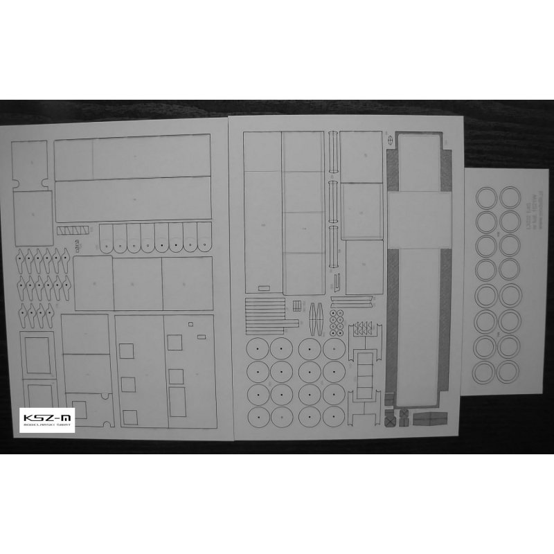 Laserowo wycięte elementy modelu, które w oryginalnej wycinance wymagają podklejenia odpowiedniej grubości tekturą. Elementy te są precyzyjnie wycinane ploterem laserowym od razu w tekturze o właściwej grubości i wymagają jedynie wypchnięcia palcem z arkusza (połączone są tylko małymi łącznikami).