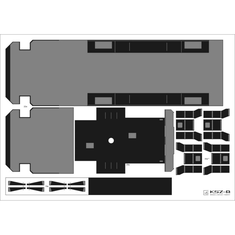- zestaw wycinany laserowo: wręgi, detale, koła, grawerowane tabliczki i pomosty