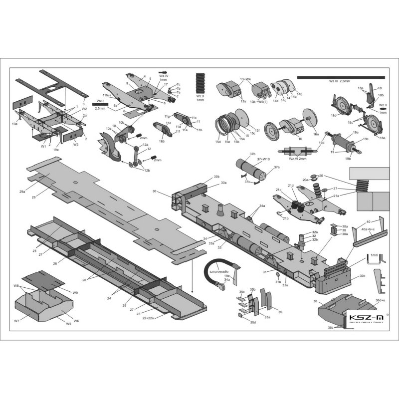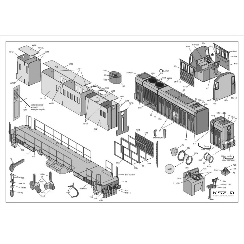 - 1 kolorową stronę A3 z rzutem bocznym parowozu i zdjęciami modelu wykonanego przez autora