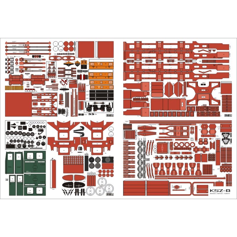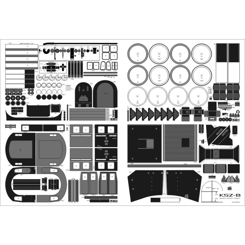 - 12 arkuszy B4 z częściami do wycinania