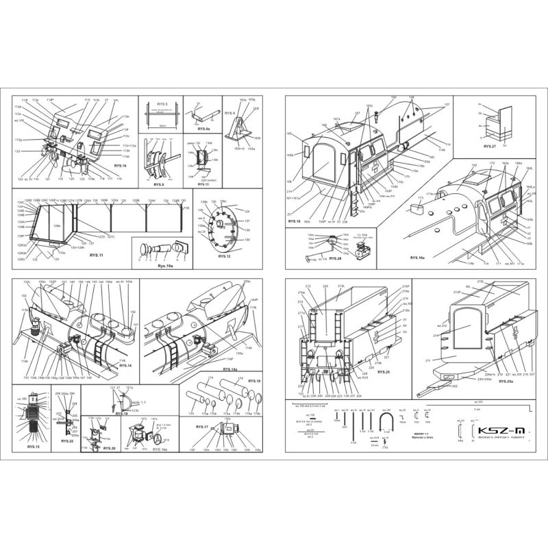 - 4 strony B4 z rysunkami montażowymi