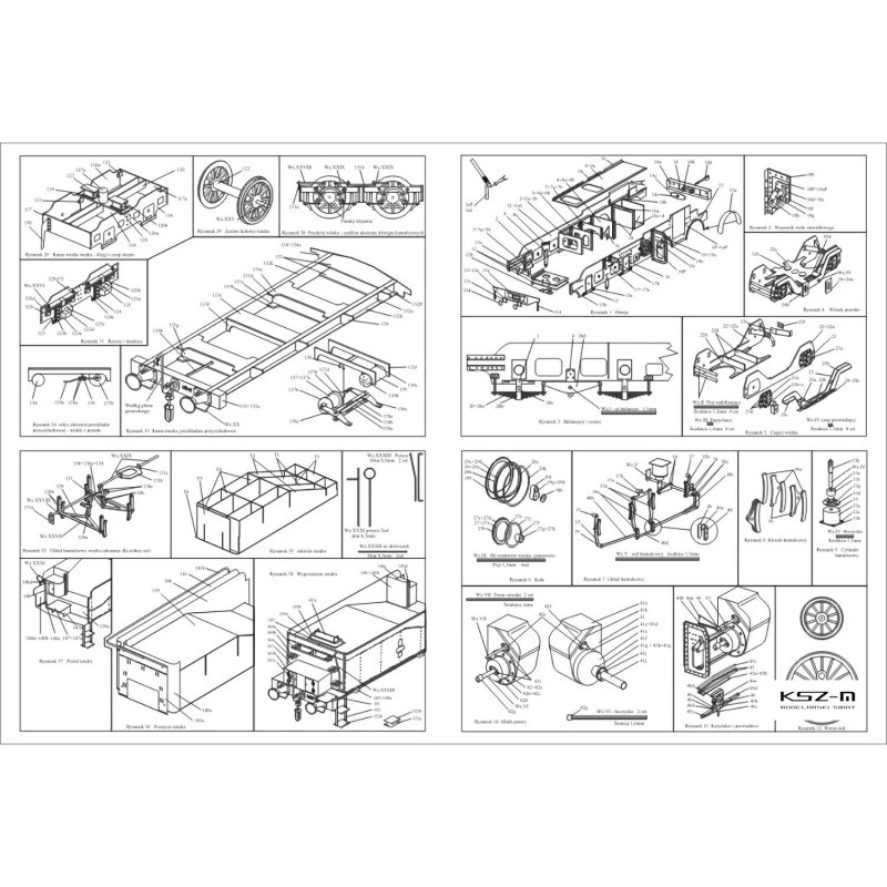 - 5 strony z rysunkami montażowymi