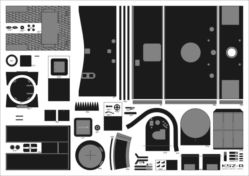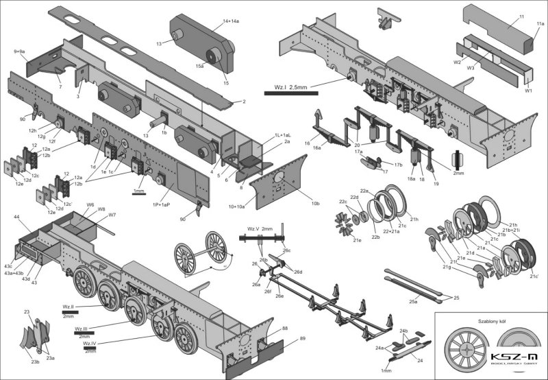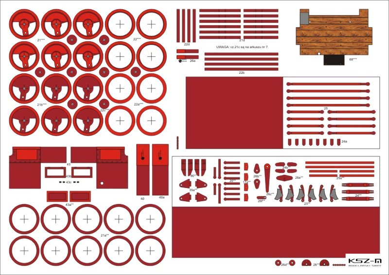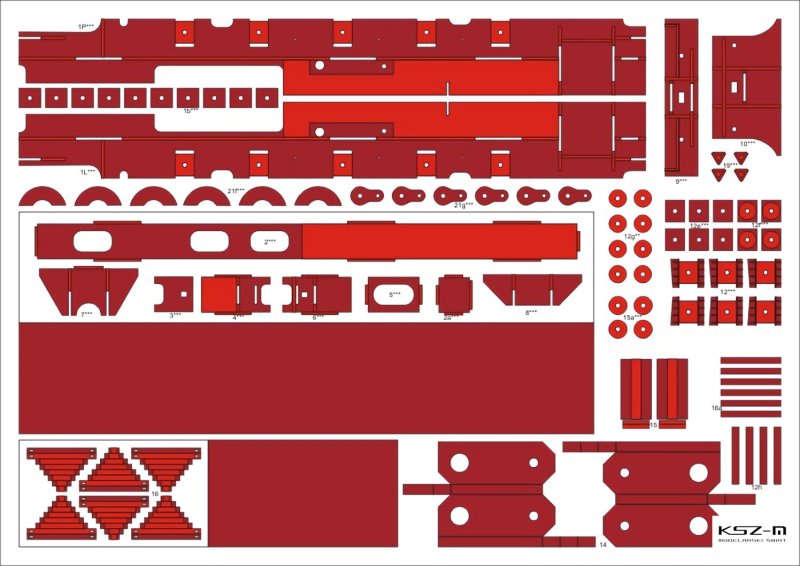 - zestaw wycinany laserowo: wręgi, koła, detale, elementy grawerowane (pomosty, tabliczki)