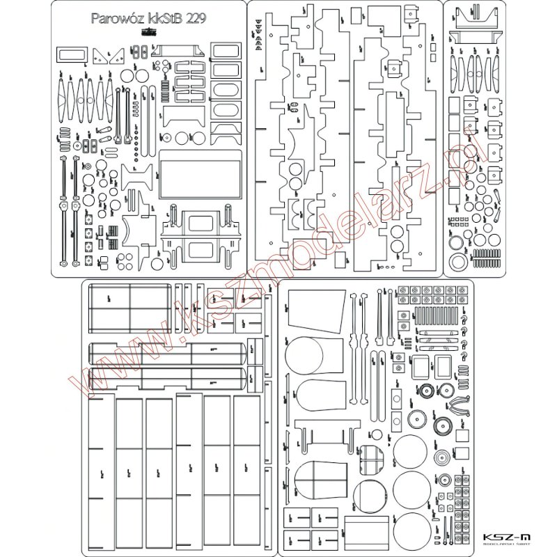 Parowóz kkStB 229 - szkielet, detale, wiązary wycinane laserowo - Angraf 256