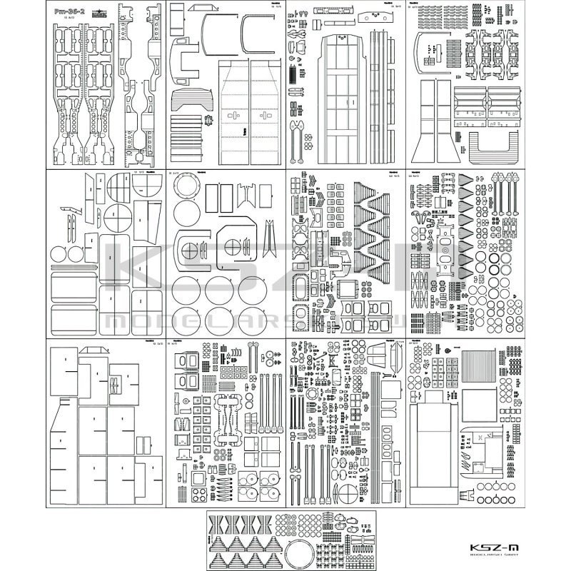 Oprócz szkieletu, zestaw zawiera również detale trudne do ręcznego wycięcia – drobne elementy konstrukcyjne oraz wyposażenia. Laserowa technologia gwarantuje ich wysoką precyzję i estetykę. Wszystkie części są gotowe do użycia – wystarczy je delikatnie wypchnąć z arkusza, ponieważ są połączone jedynie cienkimi łącznikami.