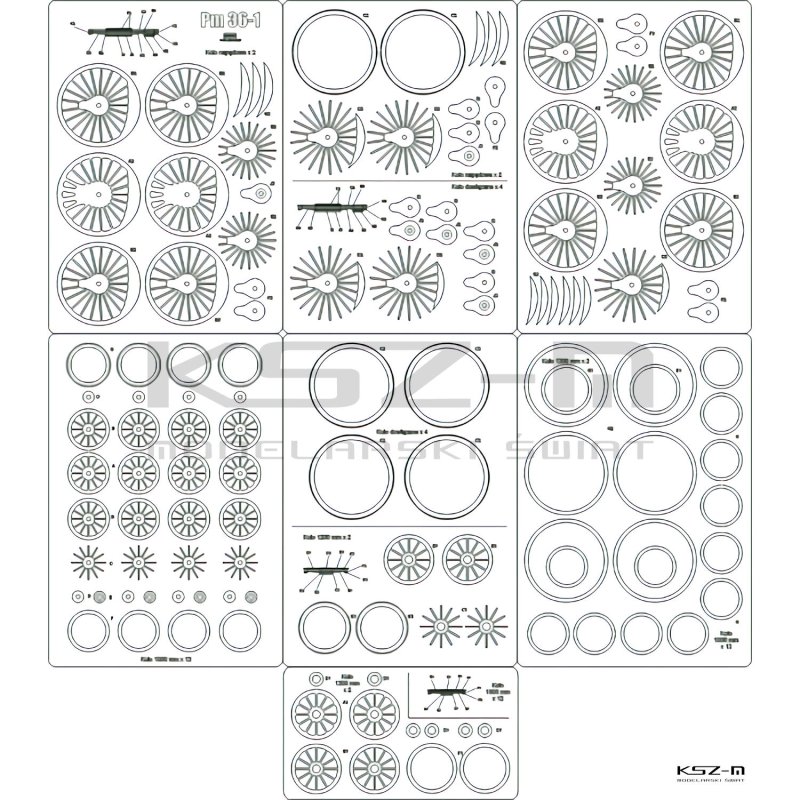 Koła wycinane laserowo do modelu parowozu Pm36 Piękna Helena z wydawnictwa Angraf nr 114 lub 284
