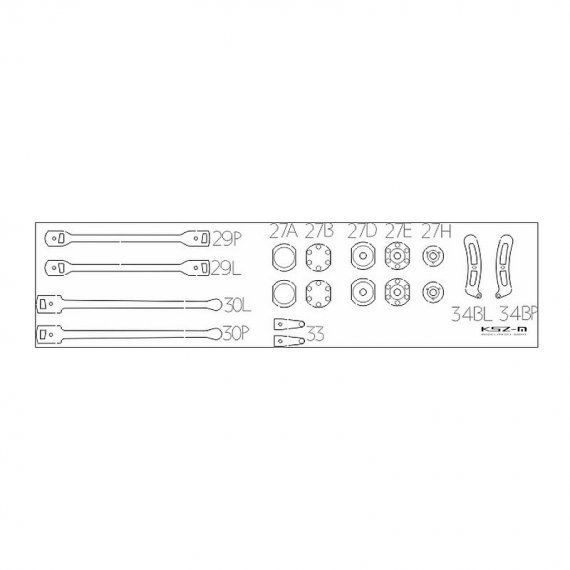 Laserowo wycięte elementy modelu, które w oryginalnej wycinance wymagają podklejenia odpowiedniej grubości tekturą. Elementy te są precyzyjnie wycinane ploterem laserowym od razu w tekturze o właściwej grubości i wymagają jedynie wypchnięcia palcem z arkusza (połączone są tylko małymi łącznikami).