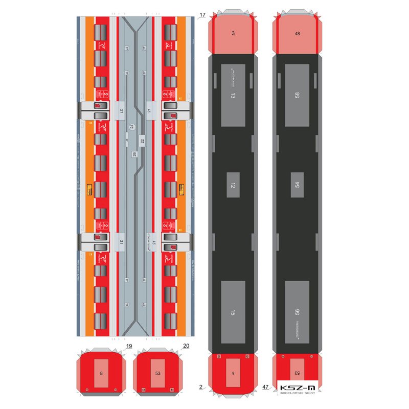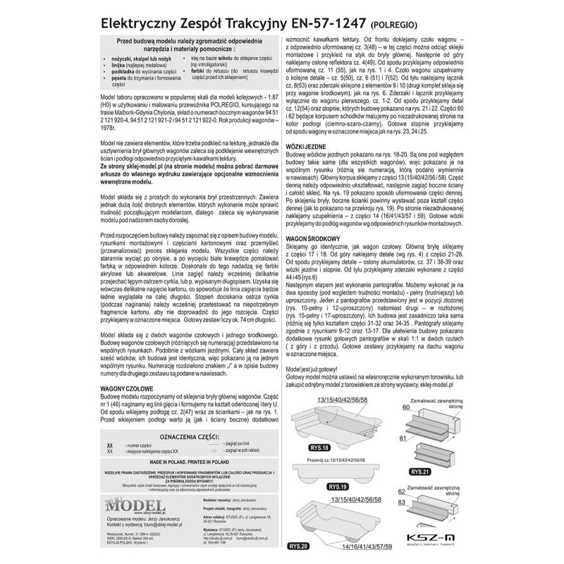 Egzemplarz zawiera model kartonowy do sklejenia prezentujący skład Elektrycznego Zespołu Trakcyjnego EN-57 (1247) w malowaniu taboru użytkowanego przez Pomorska Kolej Metropolitalną obsługiwaną przez POLREGIO Sp. z o.o. Tabor ten kursuje na linii Malbork-Gdynia Chylonia