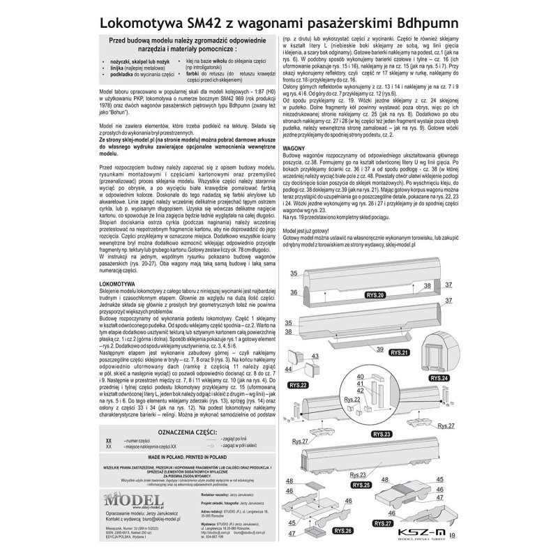 Egzemplarz wycinanki zawiera model kartonowy do sklejenia prezentujący skład kolejowy - lokomotywę SM42 oraz wagony piętrowe typu Bdhpumn (zwane potocznie "Bohunami") w malowaniu taboru użytkowanego przez PKP. Obecnie skład taki jest już wycofany z użytkowania.
