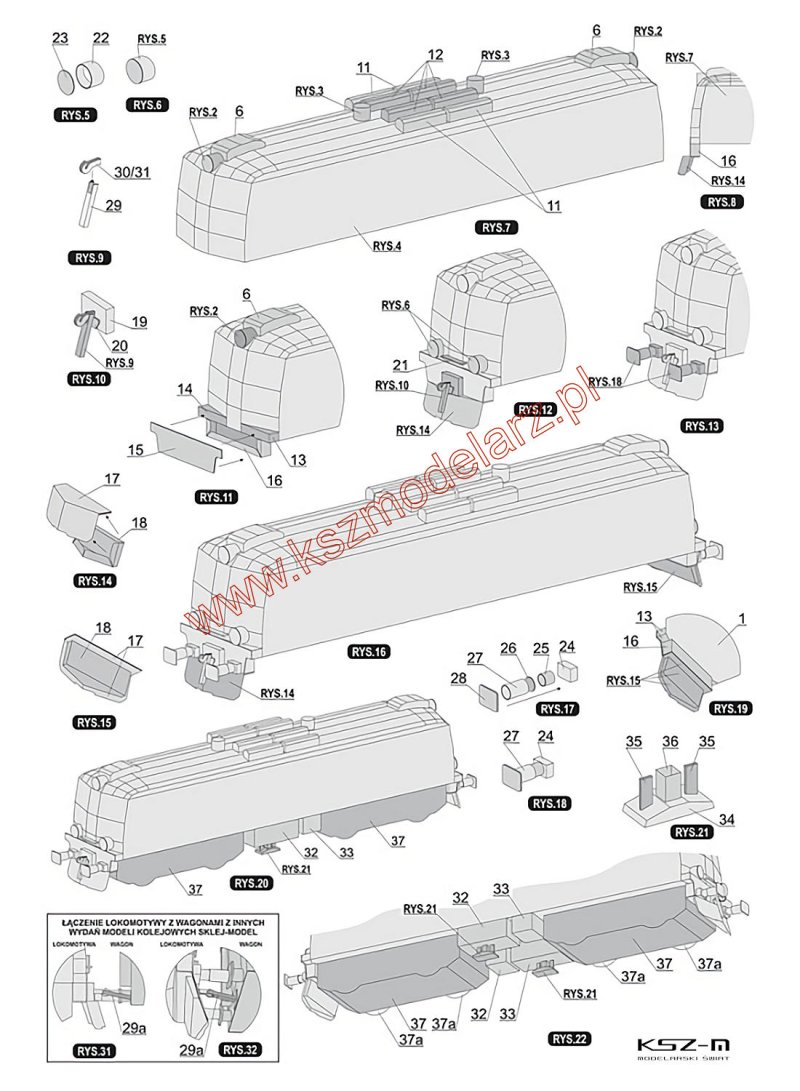 Z egzemplarza można wykonać następujące wagony i lokomotywę: