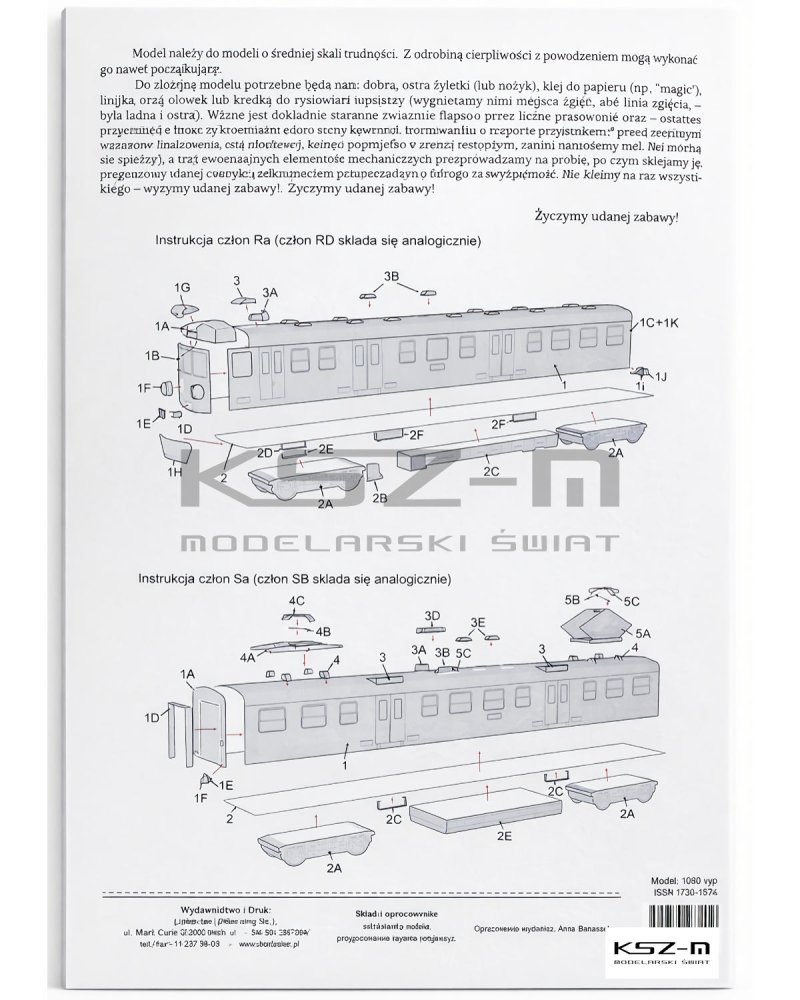 Model przedstawia polski elektryczny zespół trakcyjny EN71 w barwach Polregio, przeznaczony do obsługi regionalnych połączeń pasażerskich. Zestaw został zaprojektowany z myślą o dzieciach oraz początkujących modelarzach, oferując czytelną grafikę i logiczny podział elementów. Skala 1/87 (H0) pozwala na wykonanie kompaktowego modelu, który dobrze prezentuje się na makietach kolejowych. Konstrukcja jest uproszczona w stosunku do modeli zaawansowanych, co ułatwia montaż i ogranicza liczbę drobnych detali. Zestaw może być interesujący również dla dorosłych miłośników kolei regionalnej.