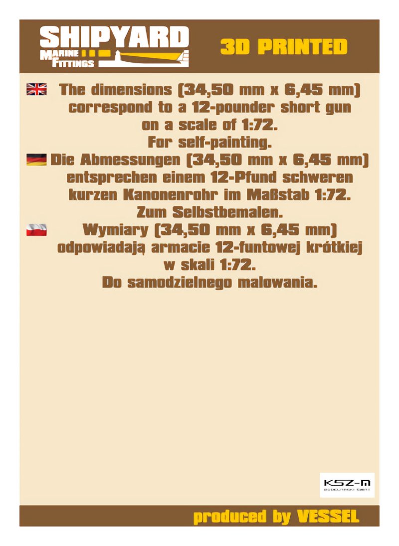 Wymiary odpowiadają armacie 12-funtowej krótkiej w skali 1:72
