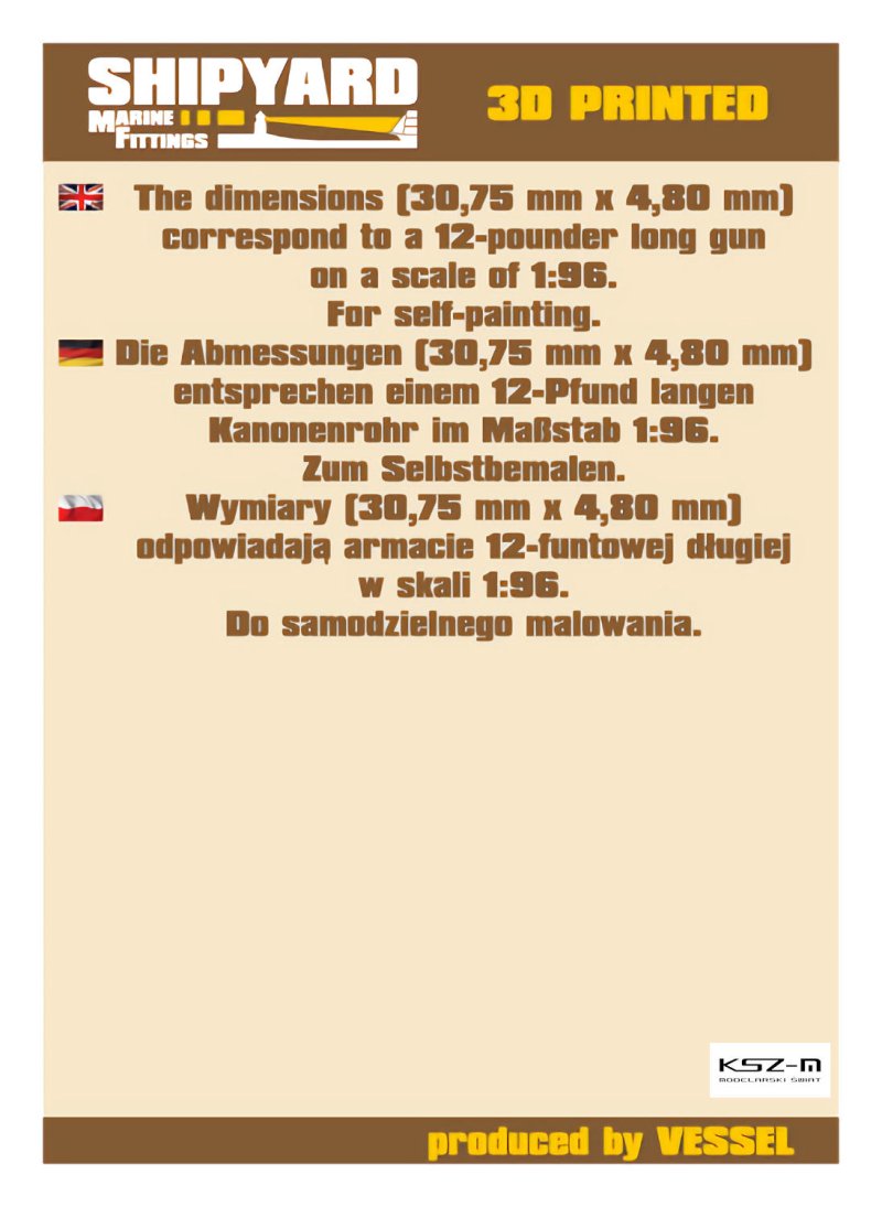 Wymiary odpowiadają armacie 12-funtowej długiej w skali 1:96