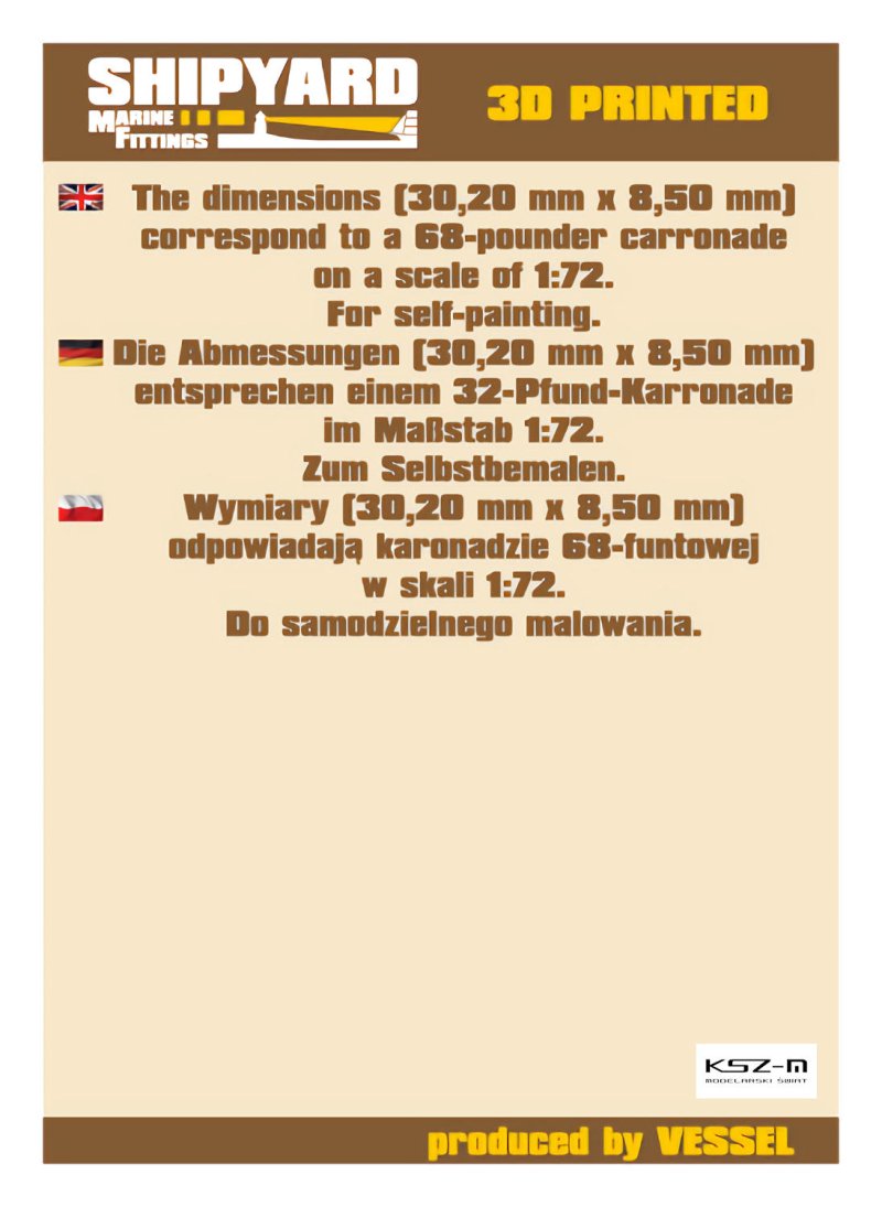Wymiary odpowiadają karonadzie 68-funtowej w skali 1:72