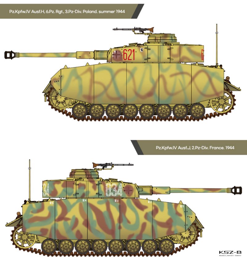 Panzerkampfwagen IV Ausf. H był jednym z najliczniej produkowanych niemieckich czołgów średnich w czasie II wojny światowej. Wersja ta weszła do produkcji w połowie 1943 roku i stanowiła dalszy rozwój wcześniejszych odmian, dostosowany do walk z coraz silniej opancerzonymi wozami aliantów. Wersję H wyposażono w wzmocniony pancerz czołowy o grubości 80 mm oraz w charakterystyczne boczne osłony Schürzen, chroniące przed pociskami kumulacyjnymi. Głównym uzbrojeniem była armata 7,5 cm KwK 40 L/48, zdolna do przebicia większości alianckich czołgów średnich. Pojazd napędzany był silnikiem Maybach HL 120 TRM o mocy 300 KM, co zapewniało prędkość do 40 km/h. Załogę stanowiło pięć osób. PzKpfw IV Ausf. H uczestniczył w działaniach na wszystkich frontach – od frontu wschodniego, przez Włochy, po Normandię – stanowiąc podstawę niemieckich sił pancernych aż do końca wojny.