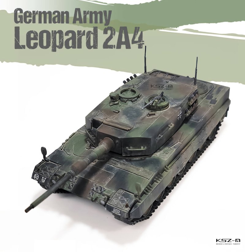 Leopard 2 to niemiecki czołg podstawowy opracowany w latach 70. XX wieku jako następca Leoparda 1. Wersja 2A4 była jedną z najliczniej produkowanych odmian, wprowadzoną do służby w latach 80. Charakteryzowała się zastosowaniem cyfrowego systemu kierowania ogniem oraz ulepszonego pancerza kompozytowego. Uzbrojenie główne stanowi armata gładkolufowa Rheinmetall kal. 120 mm, która zapewnia wysoką skuteczność na dużych dystansach. Czołg wyposażono w nowoczesne systemy obserwacji i stabilizacji uzbrojenia, umożliwiające prowadzenie ognia w ruchu. Leopard 2A4 był eksportowany do wielu krajów i stał się jedną z najbardziej rozpoznawalnych konstrukcji pancernych NATO. W trakcie eksploatacji był modernizowany i dostosowywany do nowych wymagań pola walki. Do dziś pozostaje ważnym elementem sił zbrojnych wielu państw.