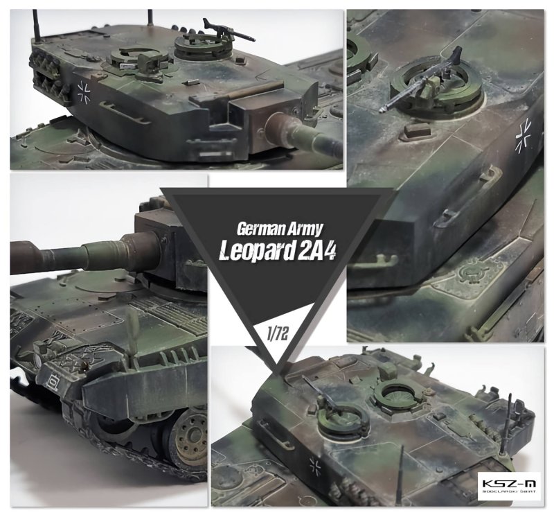 Model przedstawia niemiecki czołg podstawowy Leopard 2A4, używany przez Bundeswehrę oraz liczne armie na świecie, w tym Wojsko Polskie. W zestawie przewidziano wariant malowania i oznakowania pojazdu używanego przez Siły Zbrojne RP (10 Brygada Kawalerii Pancernej, 2012). Model Academy w skali 1:72 odwzorowuje charakterystyczne cechy tej wersji, w tym bryłę wieży, układ zawieszenia oraz detale wyposażenia.