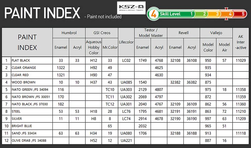 - Zestaw zawiera: wypraski, kalkomanie, instrukcję montażu, schemat malowania