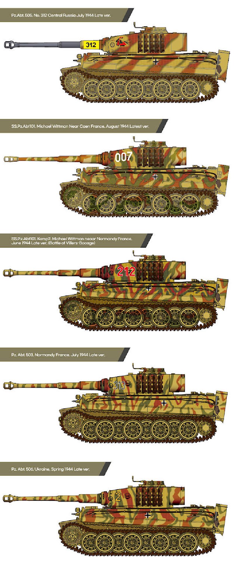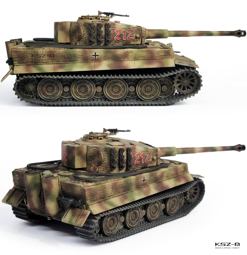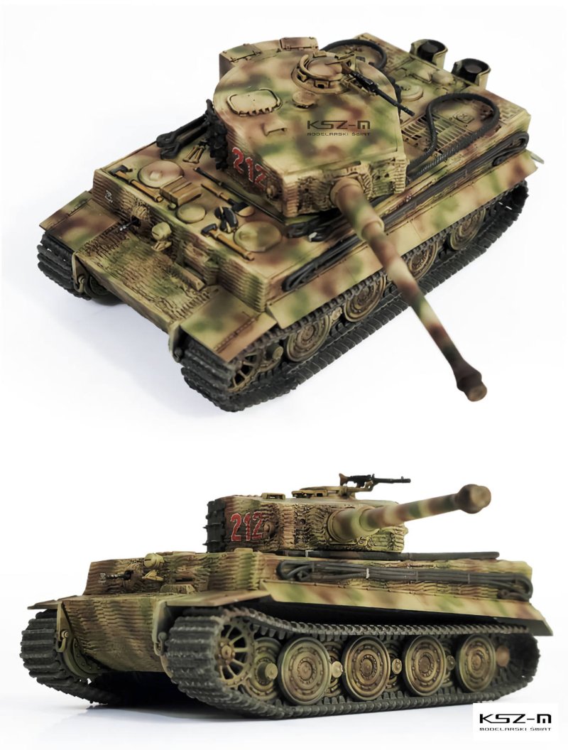 Tiger I był jednym z najbardziej rozpoznawalnych i najgroźniejszych czołgów ciężkich II wojny światowej. Wprowadzony do służby w 1942 roku, szybko zyskał reputację dzięki potężnej armacie 88 mm oraz grubemu pancerzowi. Wersja późna (Late) powstała w wyniku uproszczeń produkcyjnych i zmian technologicznych, które miały przyspieszyć produkcję w warunkach wojennych. Jedną z najbardziej charakterystycznych zmian było zastosowanie stalowych kół jezdnych zamiast wcześniejszych gumowanych. Na powierzchni pancerza stosowano powłokę Zimmerit, mającą chronić pojazd przed minami magnetycznymi. Tiger I brał udział w walkach na wszystkich frontach europejskich, od Afryki Północnej po front wschodni i zachodni. Pomimo wysokiej skuteczności bojowej był konstrukcją skomplikowaną i kosztowną w produkcji oraz utrzymaniu. Z biegiem czasu ustępował miejsca nowszym konstrukcjom, jednak do końca wojny pozostawał groźnym przeciwnikiem na polu walki.