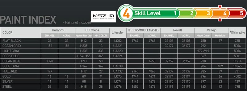 Wymagane farby (Humbrol / Vallejo Model Color / Revell Email Color)