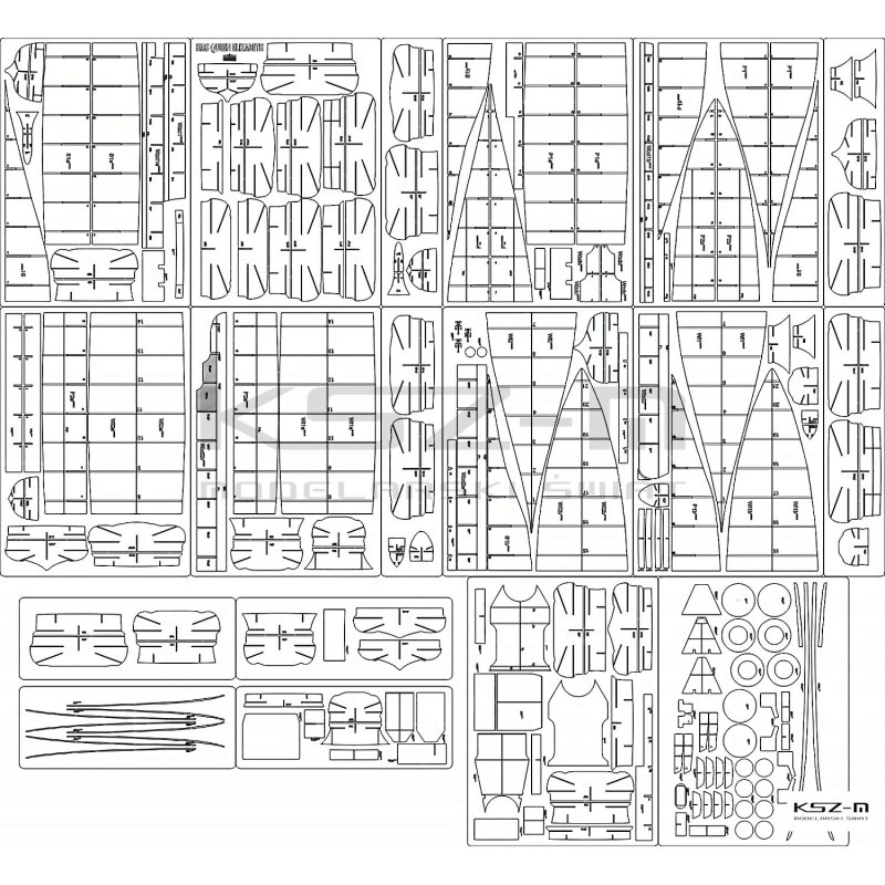 Zestaw zawiera elementy wycinane laserowo, które w standardowej wersji wycinanki trzeba podklejać tekturą o odpowiedniej grubości. Te części są precyzyjnie wycięte laserem bezpośrednio w tekturze o wymaganej grubości, więc wystarczy je jedynie delikatnie wypchnąć z arkusza, gdyż są połączone jedynie cienkimi łącznikami. Kupując ten zestaw, nie trzeba dokupywać dodatkowego zestawu tektur – wszystkie potrzebne elementy są już zawarte w komplecie.