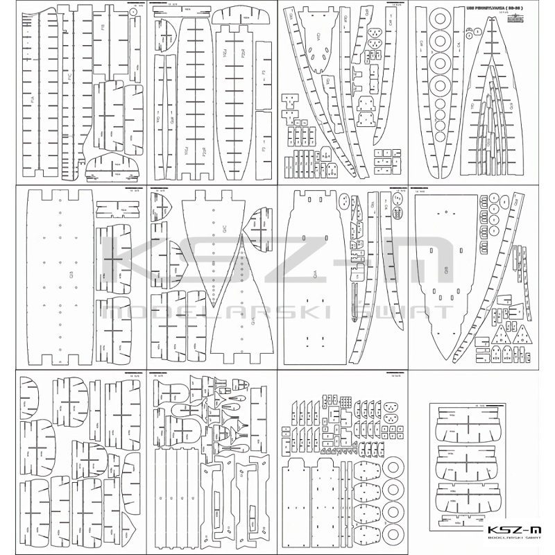 Szkielet wycinany laserowo przeznaczony do modelu kartonowego USS Pennsylvania (BB-38) w skali 1:200 z wydawnictwa Card Army. Zestaw stanowi precyzyjnie przygotowaną konstrukcję nośną kadłuba, ułatwiającą zachowanie właściwej geometrii modelu oraz zwiększającą jego sztywność. Elementy są dopasowane do opracowania Card Army 07.