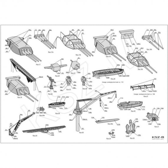 - zestaw wycinany laserowo: szkielet (wręgi), detale