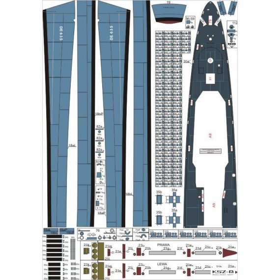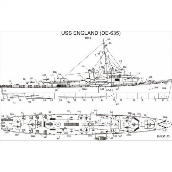Model przedstawia jeden z najsłynniejszych okrętów II Wojny Światowej - niszczyciel eskortowy typu Buckley, USS England. W 1944 w ciągu 13 dni zatopił 6 japońskich okrętów podwodnych. Model trudny z dużą ilością małych części. Model zawiera także instrukcję w języku angielskim.
