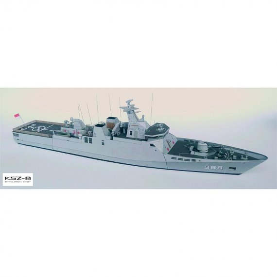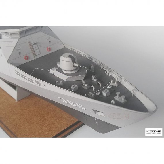 Okręt zbudowany w 2007 roku. Model można skleić z częścią podwodną lub do linii wodnej.