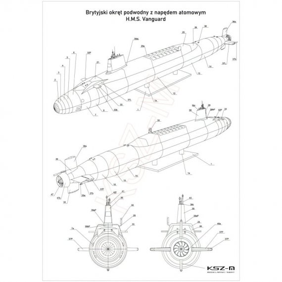 Model brytyjskiego współczesnego atomowego okrętu podwodnego typu Vanguard. Model duży, wymagający uwagi przy pracy, z możliwością wykonania wszystkich 16 rakiet z głowicami atomowymi.
