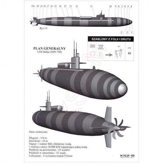 USS DALLAS okręt podwodny - Modelik 10/12 - MOD1210