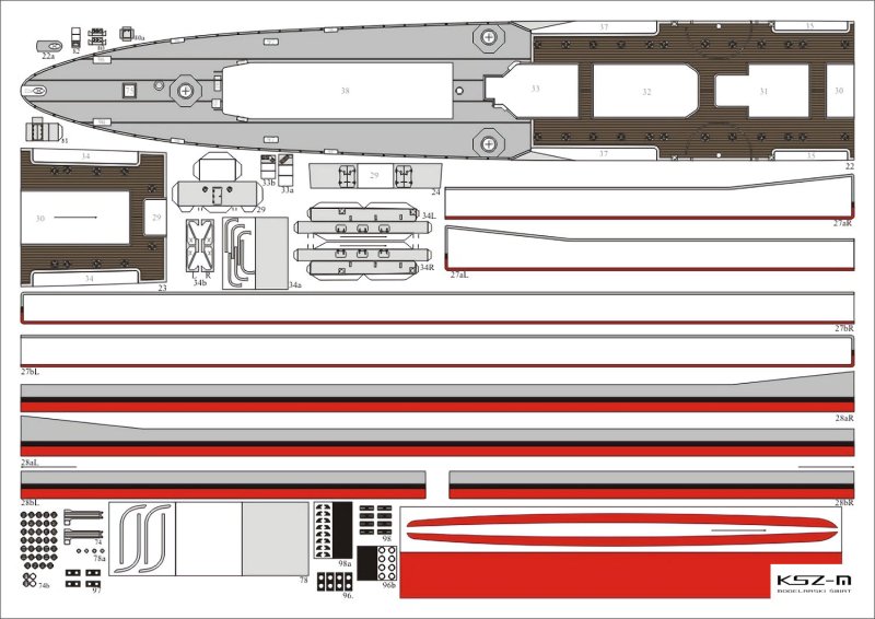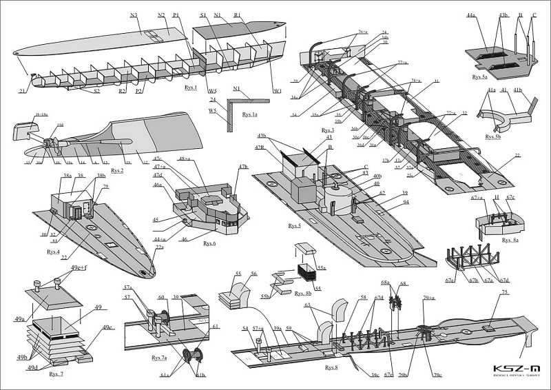 - zestaw wycinany laserowo: wręgi, detale, podstawka pod model