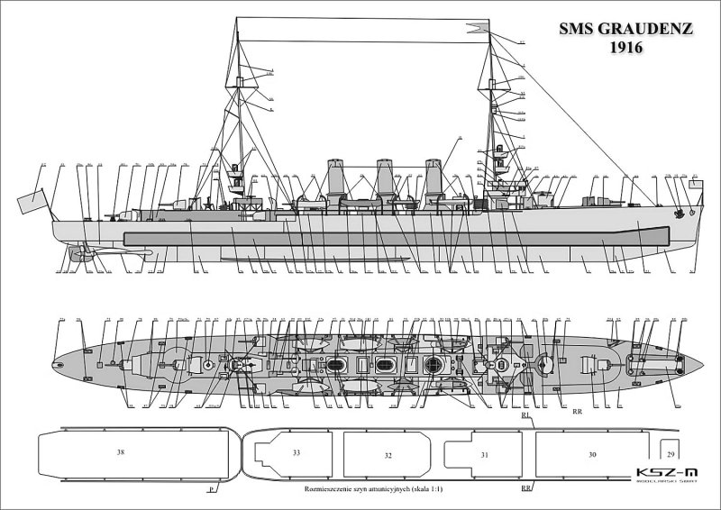 Krążownik SMS GRAUDENZ - Modelik 10/16