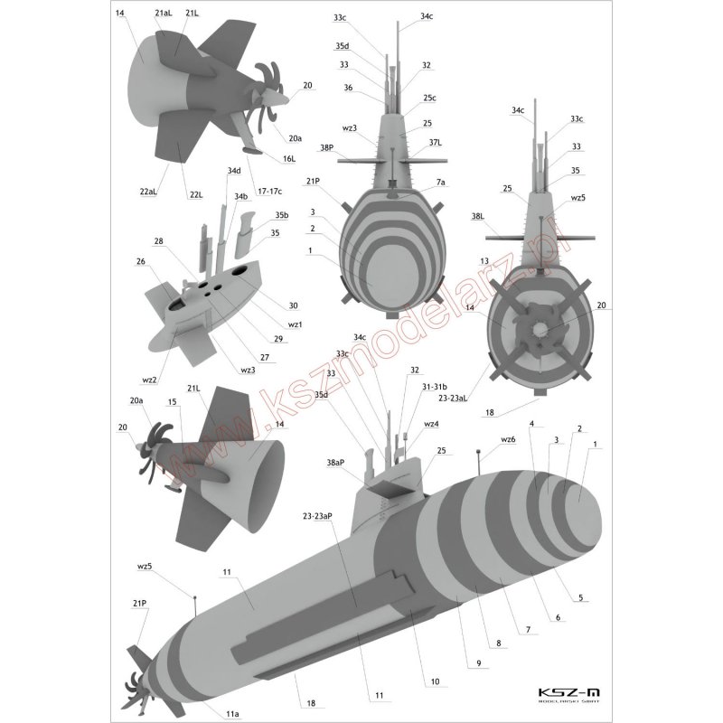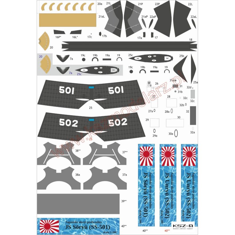 Kartonowy model japońskiego współczesnego okrętu podwodnego typu Soryu. Możliwość wykonanie jednej z dwóch jednostek: SS-501 Soryu lub SS-502 Unryu.