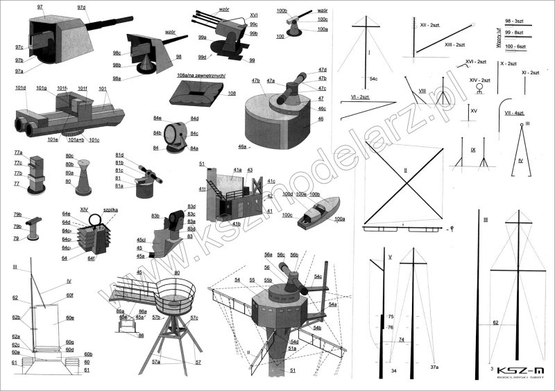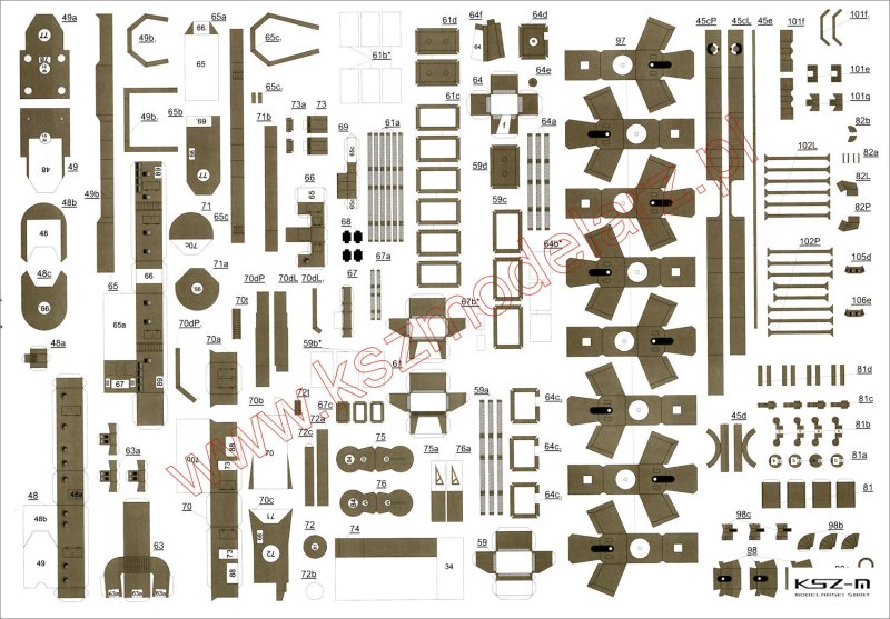 - 8 arkuszy A3 z bardzo ciasno ułożonymi częściami