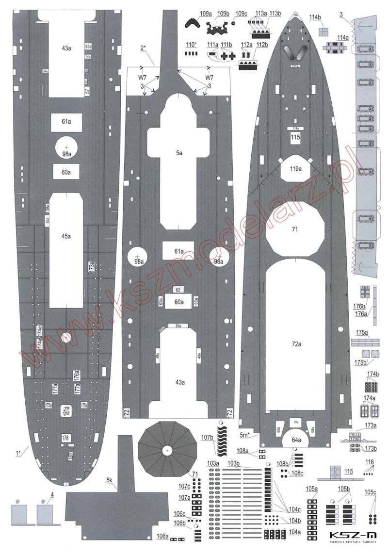 Model francuskiego wielkiego niszczyciela "Kersaint" - wielki w nazwie nie jest przesadą: wyporność całkowita 3190 t, długość 130 m, uzbrojenie główne 5 x 138 mm. Model dla zaawansowanych modelarzy.