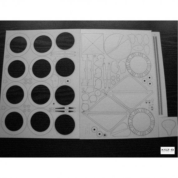 Laserowo wycięte elementy modelu, które w oryginalnej wycinance wymagają podklejenia odpowiedniej grubości tekturą. Elementy te są precyzyjnie wycinane ploterem laserowym od razu w tekturze o właściwej grubości i wymagają jedynie wypchnięcia palcem z arkusza (połączone są tylko małymi łącznikami).