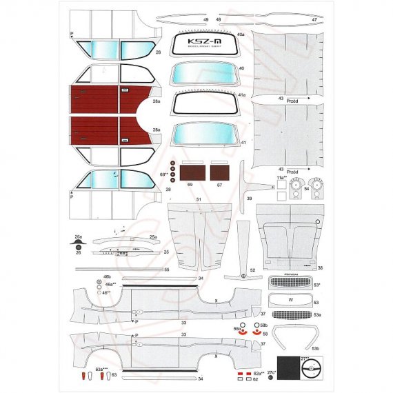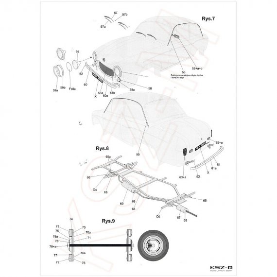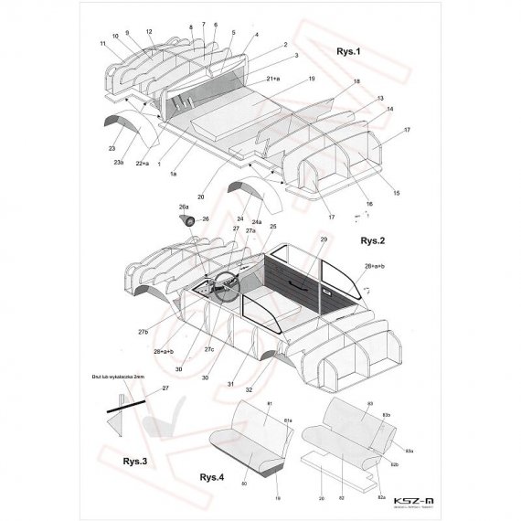 - zestaw wycinany laserowo: szkielet, detale, bieżniki