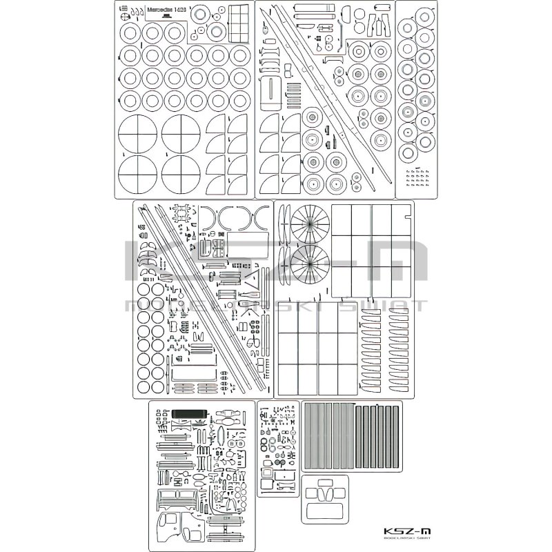 Szkielet, detale wycięte laserowo do kartonowego modelu Mercedes 1628S + naczepa cysterna z wydawnictwa Angraf nr 123