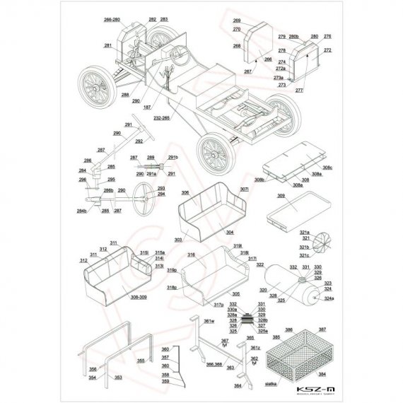 - zestaw wycinany laserowo: szkielet, bieżniki